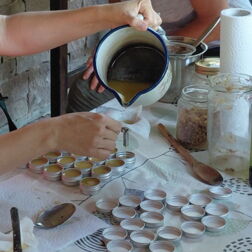 Am Ende des Workshops darf jede:r Teilnehmer:in jeweils eine selbstgerührte Salbe gegen Husten und Insektenstiche sowie gegen Entzündungen und Hautprobleme mitnehmen.